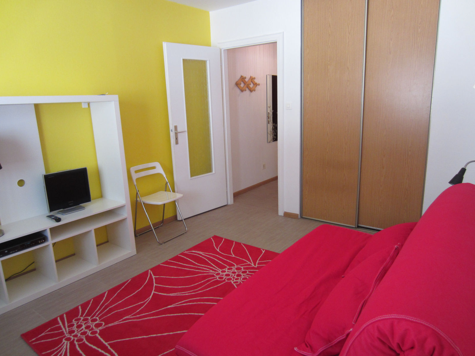 LOUE - Beau studio meublé au calme situé rue Martin Bucer, entrée avec porte blindée, nombreux rangements, un canapé lit convertible de bonne qualité, un bureau et placard mural.